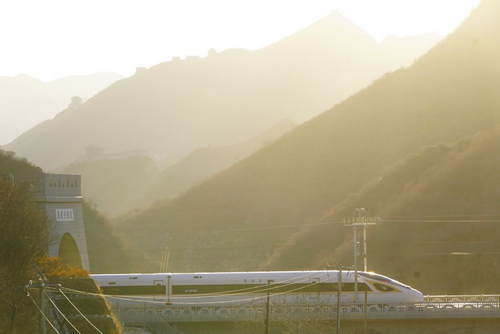 2019年12月30日,G2418次列車駛過居庸關長城。當日,北京至張家口高速鐵路開通運營,崇禮鐵路同步通車。新華社記者邢廣利攝