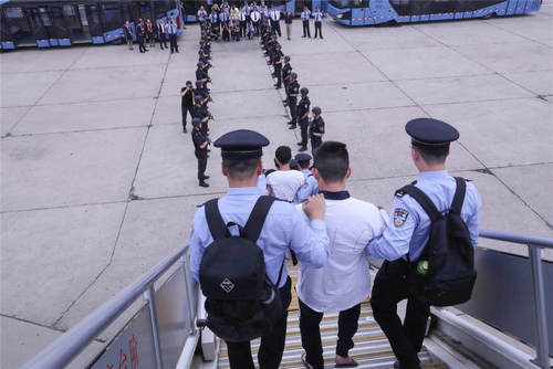 2019年6月7日,在北京首都國際機場,94名冒充公檢法機關工作人員實施電信網絡詐騙的中國臺灣籍犯罪嫌疑人被我國公安機關從西班牙押解回國。這是我國首次從歐洲大規(guī)模押回電信網絡詐騙犯罪嫌疑人。新華社記者殷剛攝