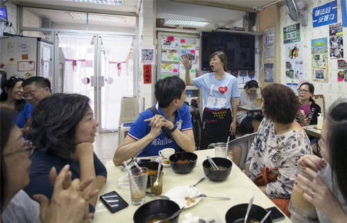 2019年10月10日,食客在李凱瑚位于香港九龍的茶餐廳里聚集,為她加油。51歲的李凱瑚是土生土長的香港人,她多次參加撐警集會,并在社交媒體上表態(tài)支持警察。遭到騷擾和恐嚇 但李凱瑚繼續(xù)勇敢支持警察,向市民發(fā)出號召,反對暴力。一些香港市民、內地游客專程來到李凱瑚的茶餐廳,為她加油打氣,表達對香港的美好祝愿。新華社記者盧燁攝