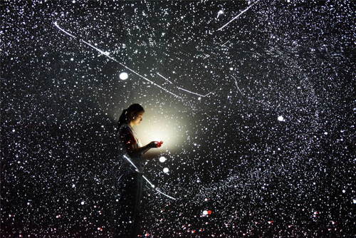 2019年5月28日, 參觀者在貴州省貴陽市舉辦的2019中國國際大數據產業(yè)博覽會“追夢·未來”數字藝術特展上觀看和體驗藝術作品《宇宙深空》。新華社記者楊文斌攝