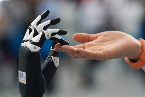 2019年6月13日,全國大眾創(chuàng)業(yè)萬眾創(chuàng)新活動周——北京會場主題展在中關村國家自主創(chuàng)新示范區(qū)展示中心開幕。這是一位參展商在演示展出的機器人產品。新華社記者鞠煥宗攝