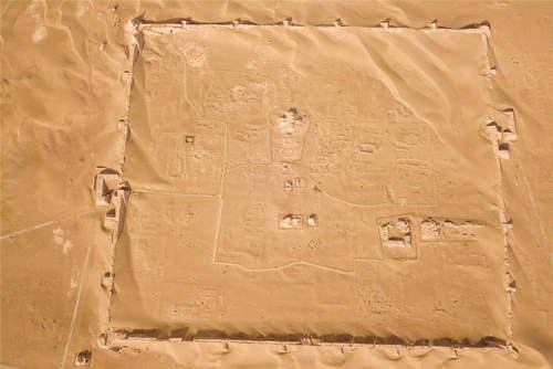 2019年10月18日拍攝的黑城遺址城池全貌(無人機照片)。黑城遺址位于內(nèi)蒙古阿拉善盟額濟納旗達來庫布鎮(zhèn),建于公元九世紀,是草原絲綢之路上現(xiàn)存較為完整的一處古城遺址,2001年被列入第五批全國重點文物保護單位。新華社記者彭源攝