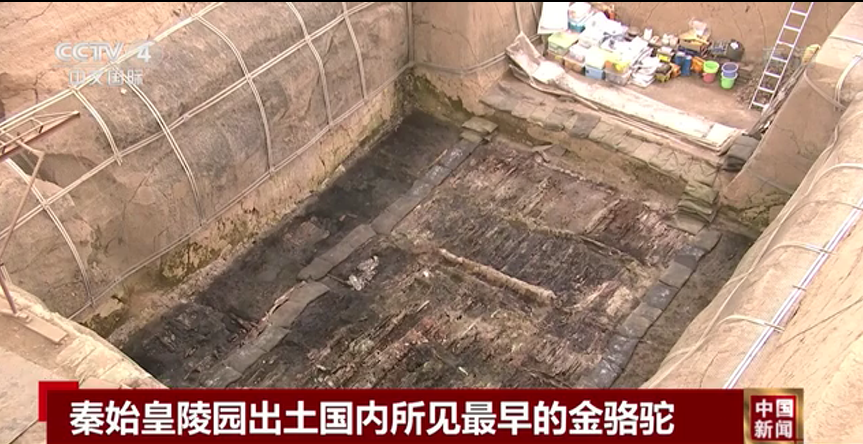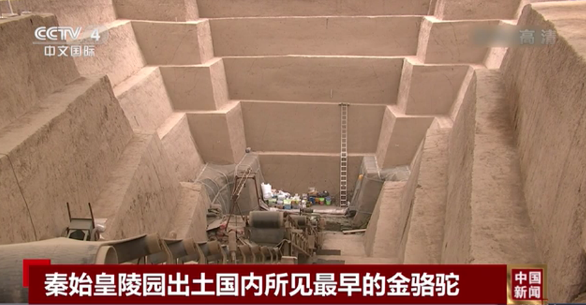 近日,秦始皇帝陵博物院公布最新考古成果:考古人員在秦陵在秦陵外城西側(cè)的陵區(qū),對(duì)一座編號(hào)為一號(hào)墓葬(QLCM1)的“中字形”墓葬進(jìn)行了發(fā)掘,取得重要收獲。該墓為目前發(fā)現(xiàn)秦代規(guī)模最大、等級(jí)最高、保存最完好的大型墓葬,填補(bǔ)了秦代高等級(jí)墓葬的空白。出土了目前國內(nèi)所見最早的單體金駱駝。