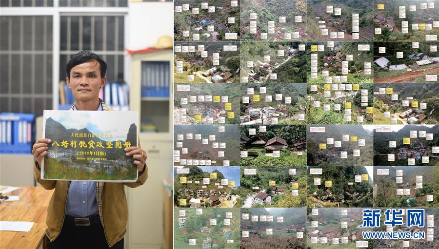 拼版照片:左圖為八好村駐村第一書記韋德王手持自己制作的“八好村脫貧攻堅(jiān)圖冊”(2019年12月16日,新華社記者黃孝邦攝);右圖為“八好村脫貧攻堅(jiān)圖冊”部分內(nèi)容的拼版照片(資料照片,韋德王攝)。