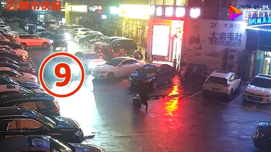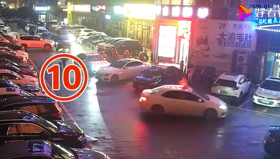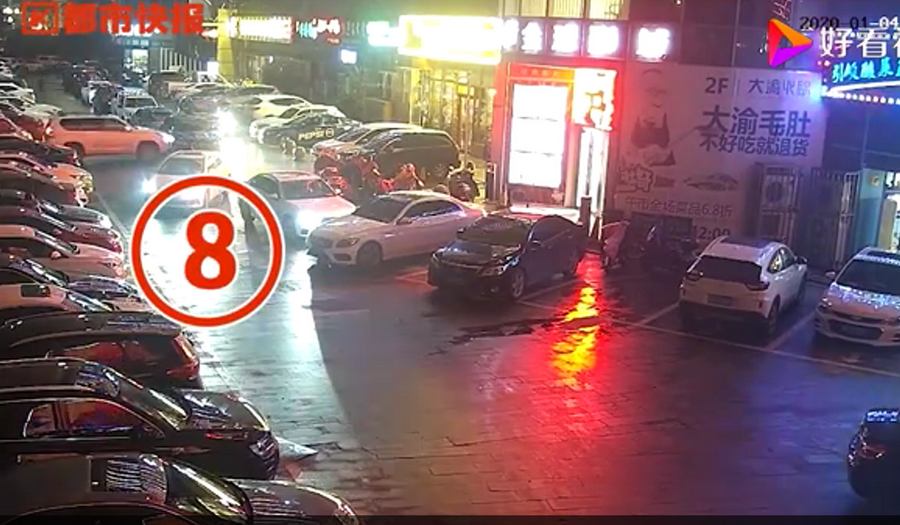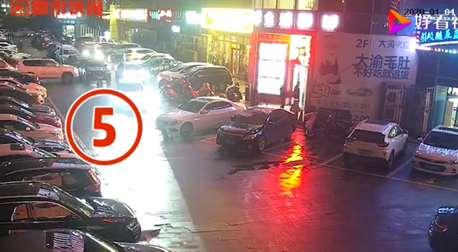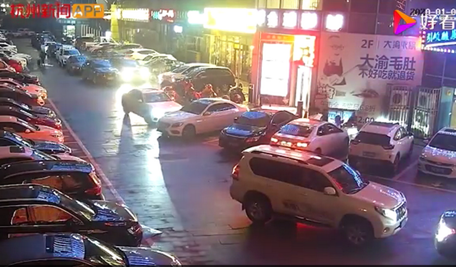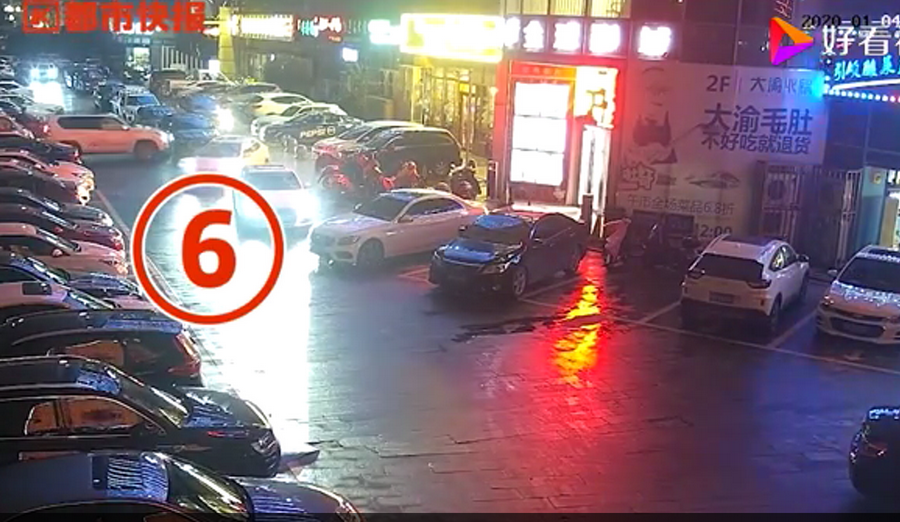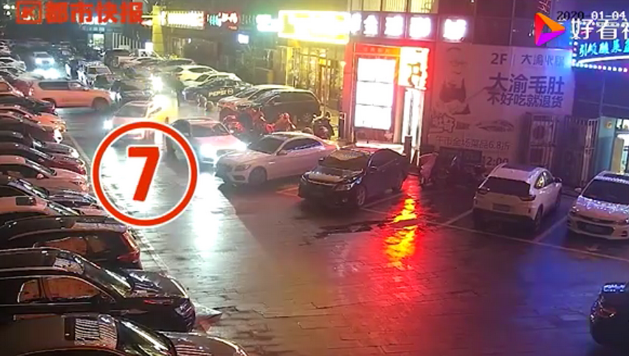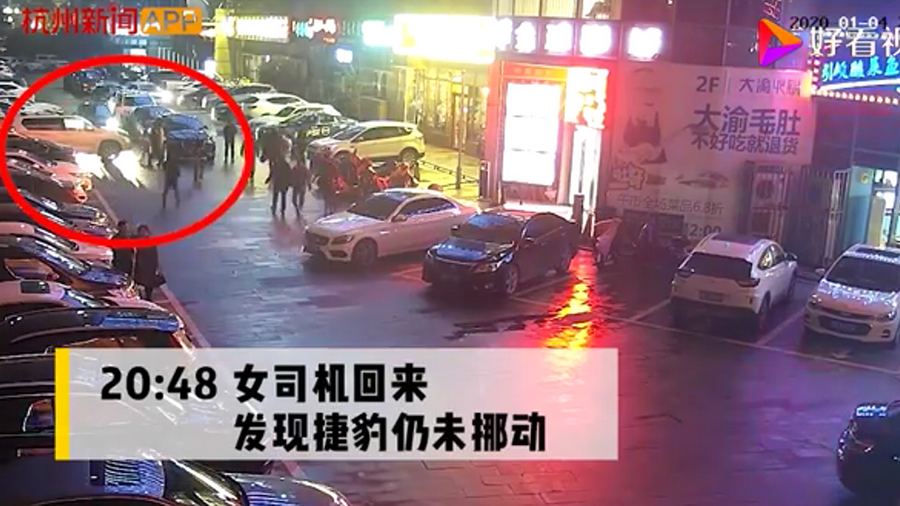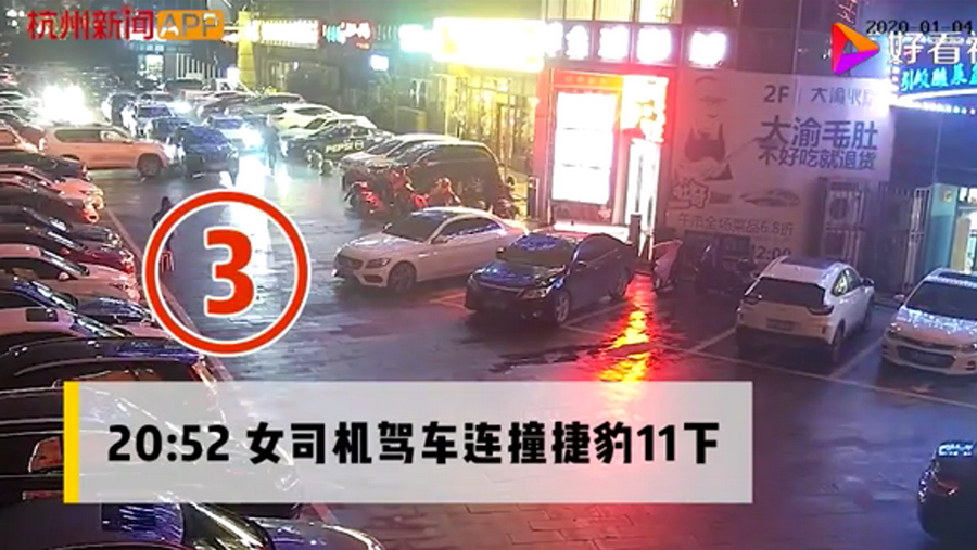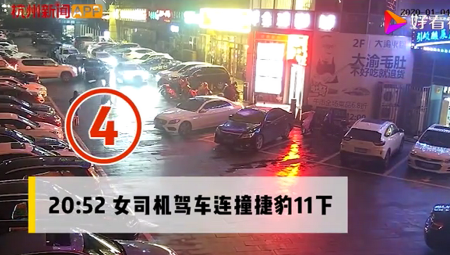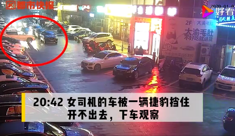 通過(guò)監(jiān)控發(fā)現(xiàn),捷豹車當(dāng)時(shí)并沒有停在停車位上,而是橫著停在停車位前的通道上,正好擋住了停在停車位里面的車輛。晚上8點(diǎn)40左右,一輛白色豐田普拉多越野車被捷豹擋住無(wú)法出去,10多分鐘后,司機(jī)通過(guò)倒車再加速十幾次撞擊捷豹,最終把車輛撞開后駛離現(xiàn)場(chǎng)。