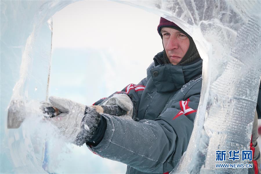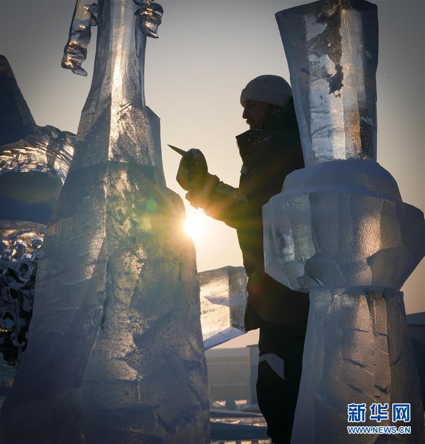 1月6日,參賽者在創(chuàng)作冰雕。新華社記者王松攝