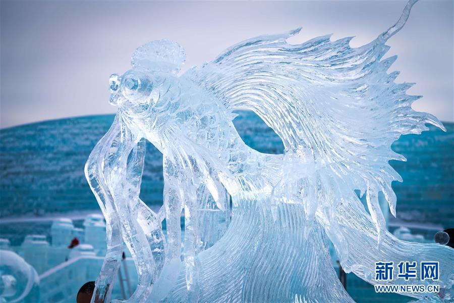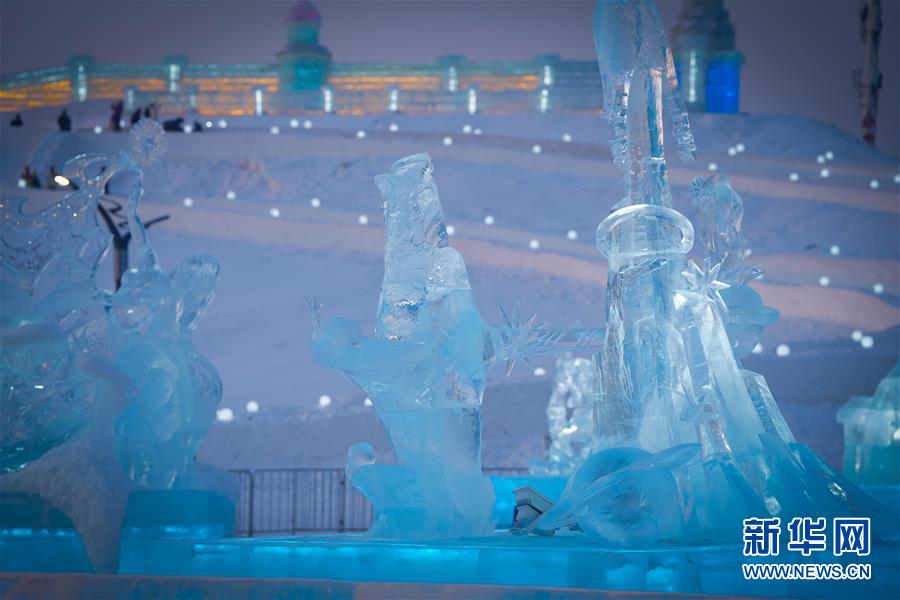 在哈爾濱冰雪大世界內(nèi)拍攝的冰雕作品(1月8日攝)。近日,在哈爾濱冰雪大世界園區(qū)內(nèi)舉行的各項(xiàng)冰雕賽事中,經(jīng)過來自世界各地的冰雕選手悉心雕琢,一塊塊冰變身為精美的藝術(shù)作品,數(shù)十座冰雕仿佛晶瑩剔透的出“冰”芙蓉。新華社記者王松攝