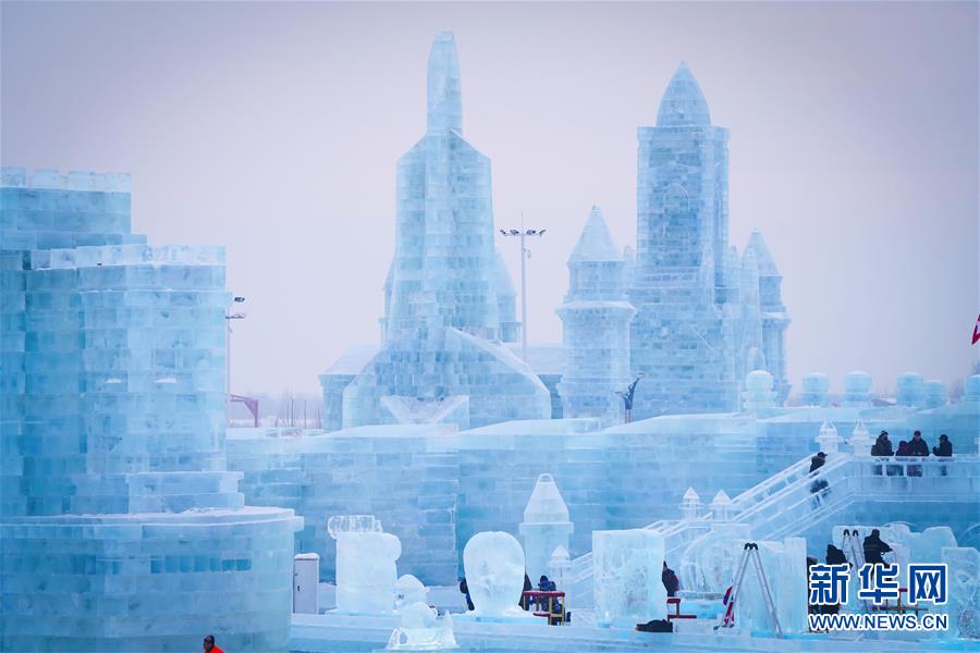 這是哈爾濱冰雪大世界園區(qū)中的景觀(1月5日攝)。每到冬季,天氣寒冷的冰城哈爾濱陸續(xù)迎來各類冰雕雪雕賽事。從2019年12月7日起,采冰工人們?nèi)找共杀\(yùn)冰、冰景雪雕藝術(shù)家精心雕琢,這些“冰雪造夢(mèng)者”們?cè)趪?yán)寒天氣中辛苦付出,讓一座“冰雪之城”在松花江畔拔地而起,向來自世界各地的游客展現(xiàn)浪漫絢麗的冰雪奇觀。新華社記者王松攝