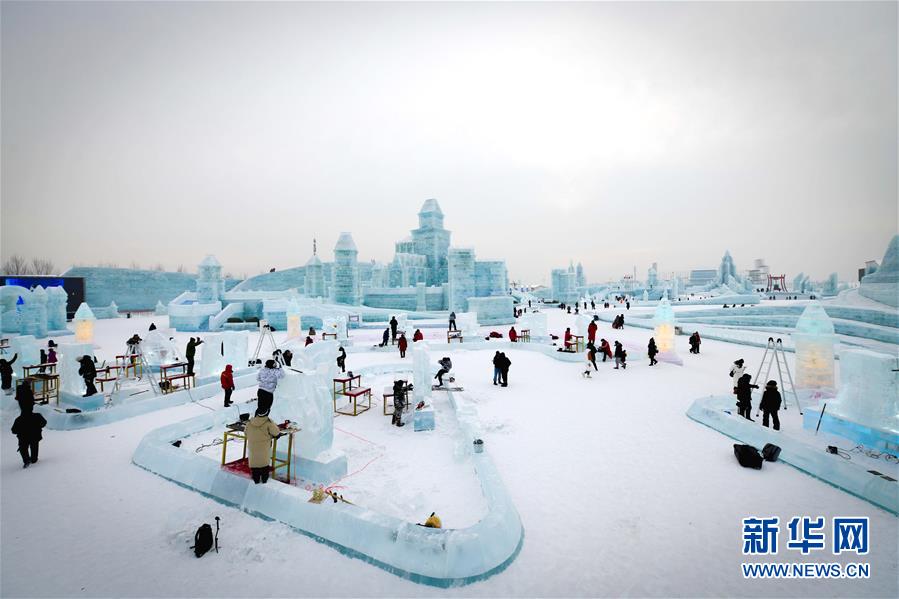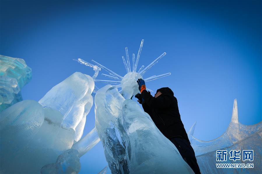 冰雕師在哈爾濱冰雪大世界內(nèi)雕刻出主題各異的冰雕作品(1月8日攝)。新華社記者王松攝