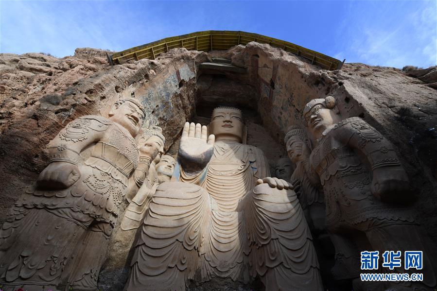 1月11日拍攝的天梯山石窟13號(hào)窟。位于甘肅省武威市的天梯山是祁連山東線的一條支脈,開鑿于巖壁上的天梯山石窟始建于東晉十六國時(shí)期的北涼,距今約有1600年歷史,是我國早期石窟藝術(shù)的杰出代表。新華社記者馬寧攝
