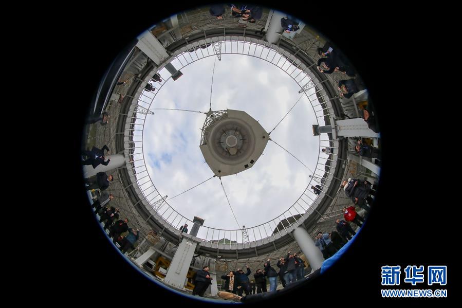 1月11日,專家學(xué)者對“中國天眼”進行考察(檢修期間拍攝)。新華社記者歐東衢攝