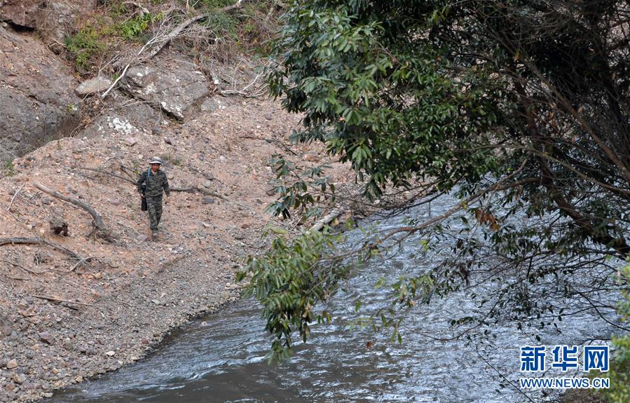 在江西九連山國家級自然保護(hù)區(qū),陳志高帶著他的相機(jī)準(zhǔn)備過一條小河進(jìn)入密林深處拍攝鳥類(1月8日攝)。新華社記者 彭昭之 攝