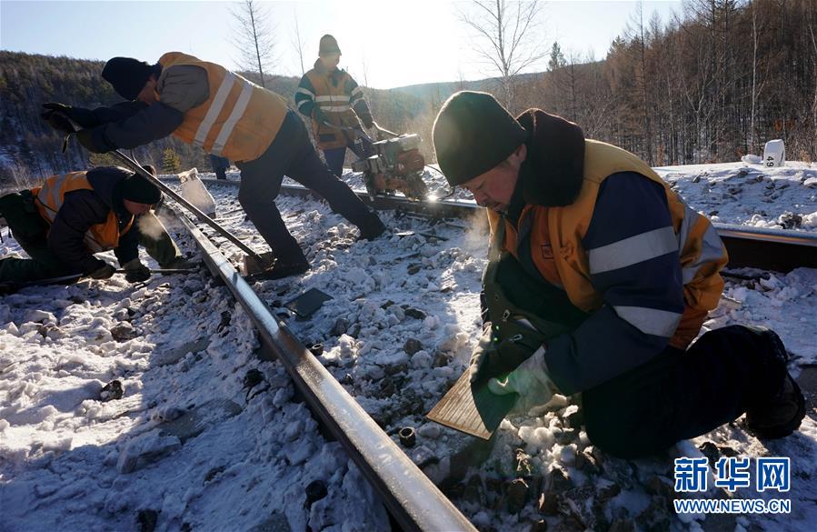 1月8日,西羅奇維修工隊(duì)工作人員在嫩林線497公里處進(jìn)行維修作業(yè)。新華社記者王毓國(guó)攝