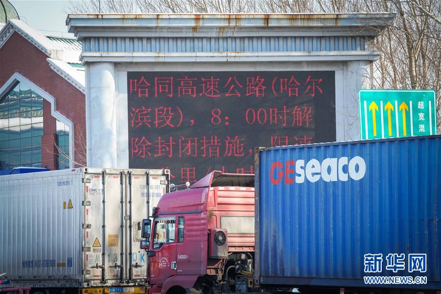 2月24日,工作人員在哈同高速公路哈爾濱收費(fèi)站為車輛人員登記。 新華社記者 王松 攝