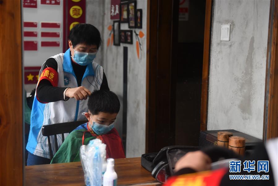 2月24日,鄒勤敏在南昌市青山湖區(qū)商苑社區(qū)服務(wù)中心為一名小朋友理發(fā)。新華社記者 胡晨歡 攝