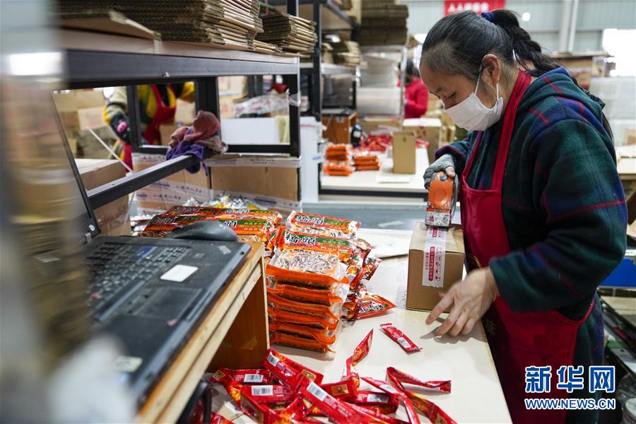2月27日,在秀山(武陵)現(xiàn)代物流園區(qū)的電商云倉內(nèi),工人在打包包裹。地處重慶市秀山縣的秀山(武陵)現(xiàn)代物流園區(qū),是渝湘黔三省市交界地區(qū)的區(qū)域性物流中心。重慶市秀山縣在做好新冠肺炎疫情防控工作前提下,當(dāng)?shù)卣e極幫助電商、物流企業(yè)解決招工、運輸、銷售等方面的實際問題,推動秀山(武陵)現(xiàn)代物流園區(qū)快速進入全面復(fù)工復(fù)產(chǎn)階段。據(jù)介紹,隨著物流園區(qū)的電商和物流企業(yè)全面復(fù)工復(fù)產(chǎn),既滿足當(dāng)?shù)厝罕姷奈镔Y供應(yīng),又幫助當(dāng)?shù)剞r(nóng)產(chǎn)品通過電商平臺實現(xiàn)快速銷售。新華社記者劉潺攝