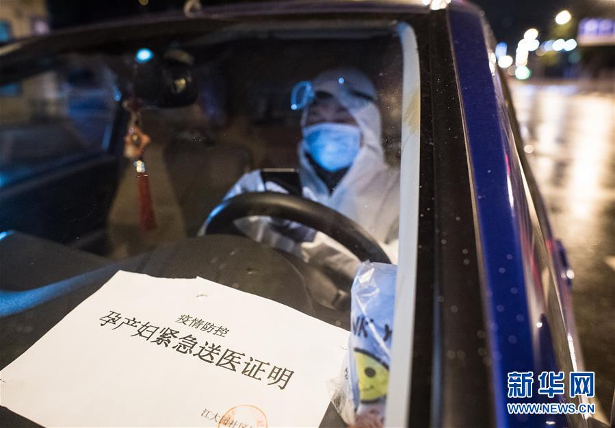 2月29日凌晨,王震接上產(chǎn)婦劉婷后駕車(chē)前往武漢市婦幼保健院。新華社記者 肖藝九 攝