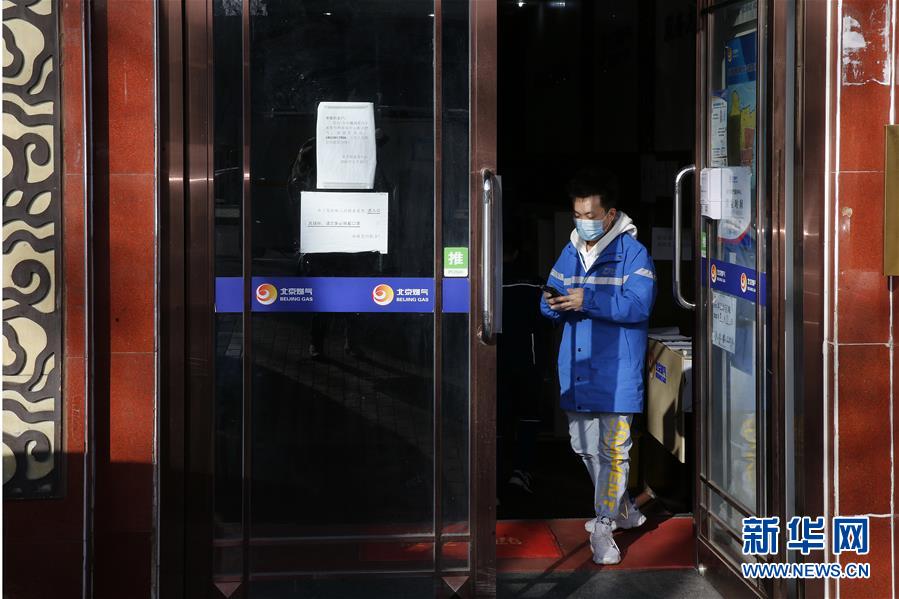 3月12日,李杰(右)在一個(gè)投遞點(diǎn)向傳達(dá)室工作人員詢問收件人的信息。新華社記者張玉薇攝