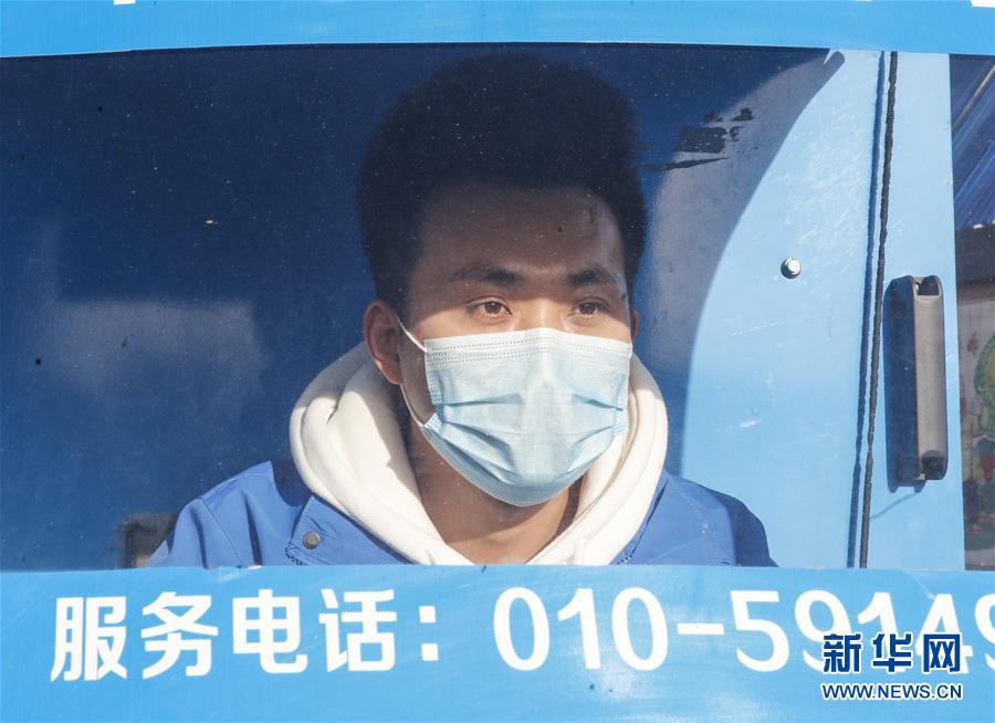 3月12日早晨,李杰在運(yùn)送快遞的路上。新華社記者張玉薇攝