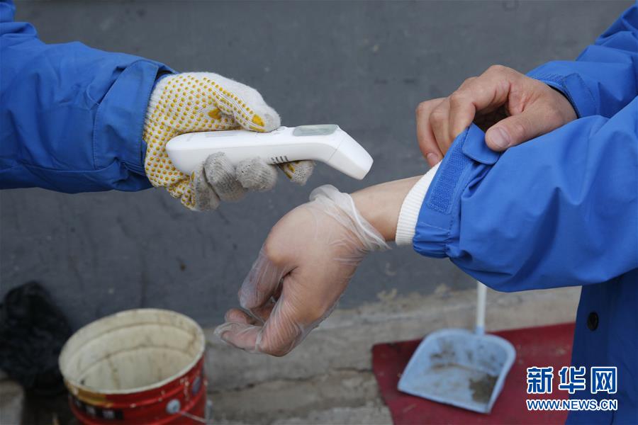 3月12日,李杰在中通快遞北京廠洼路網(wǎng)點(diǎn)上崗前檢測(cè)體溫。新華社記者張玉薇攝