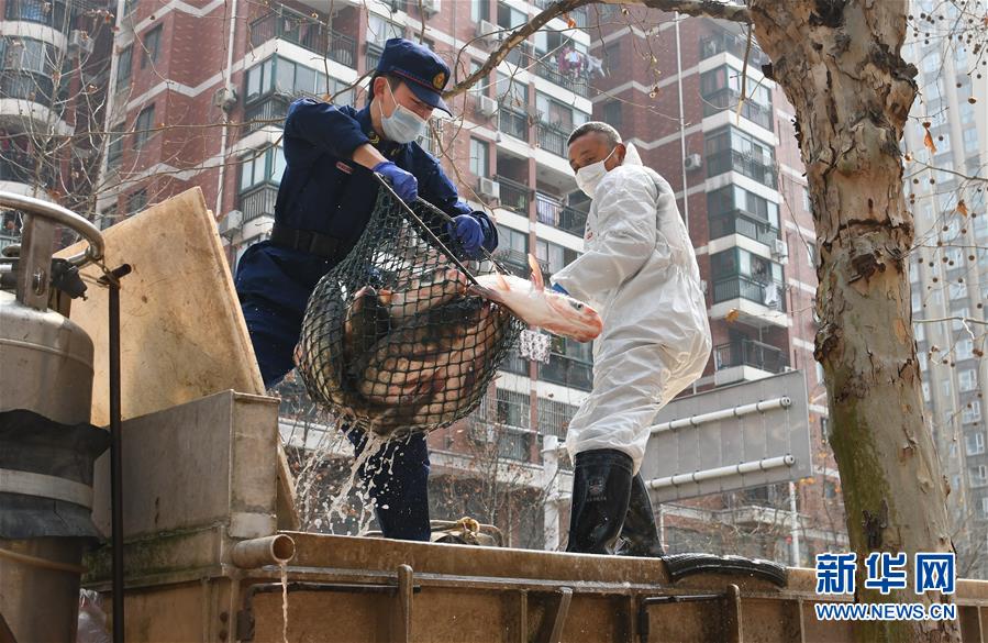 3月13日,武漢市消防救援支隊硚口大隊組織“119黨員突擊隊”等人員120余名,現(xiàn)場幫助將活魚配送到居民家中。當日,首批100噸調配自湖北省咸寧市的活魚運抵武漢市硚口區(qū)11個街道下轄社區(qū)。咸寧是魚米之鄉(xiāng),水產資源豐富。此次戰(zhàn)疫咸寧得到了全國人民的支持,疫情得到良好控制。咸寧送魚,希望傳遞愛心,支持武漢早日戰(zhàn)勝疫情。新華社記者程敏攝