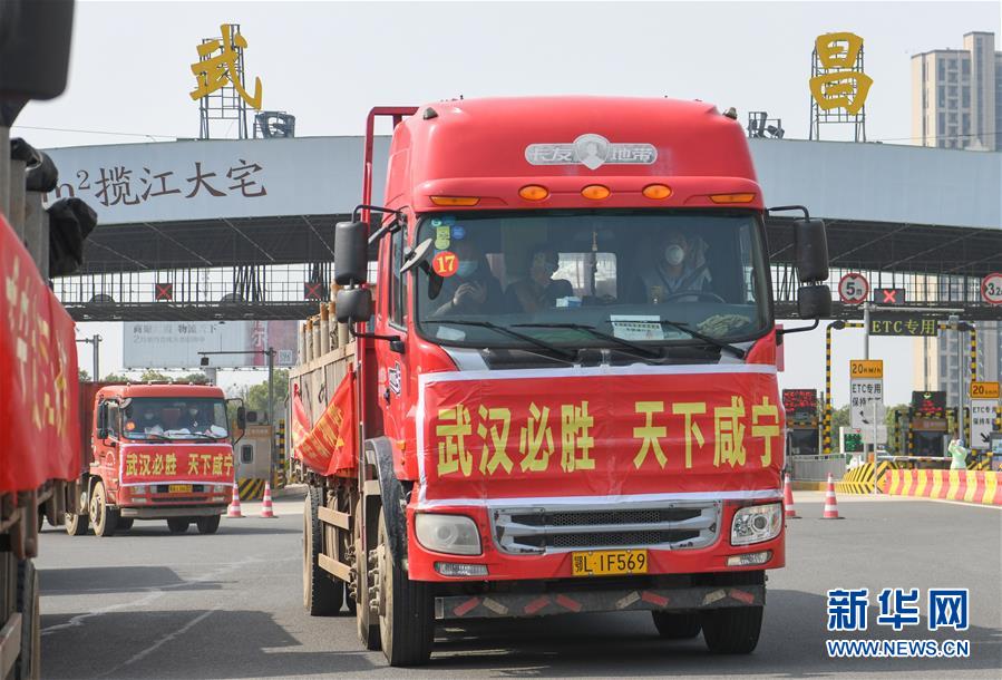 3月13日,滿載活魚的水產運輸車開往武漢市區(qū)。當日,首批100噸調配自湖北省咸寧市的活魚運抵武漢市硚口區(qū)11個街道下轄社區(qū)。咸寧是魚米之鄉(xiāng),水產資源豐富。此次戰(zhàn)疫咸寧得到了全國人民的支持,疫情得到良好控制。咸寧送魚,希望傳遞愛心,支持武漢早日戰(zhàn)勝疫情。新華社記者程敏攝