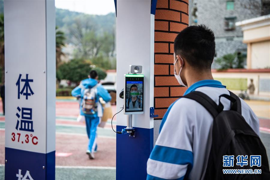 3月15日,烏當(dāng)中學(xué)高三學(xué)生在校門處測(cè)量體溫。 當(dāng)日,貴陽市烏當(dāng)中學(xué)部分高三學(xué)生有序返校,準(zhǔn)備恢復(fù)上課。據(jù)悉,貴州省高三年級(jí)和初三年級(jí)學(xué)生將于3月16日正式開學(xué)。 新華社記者 陶亮 攝