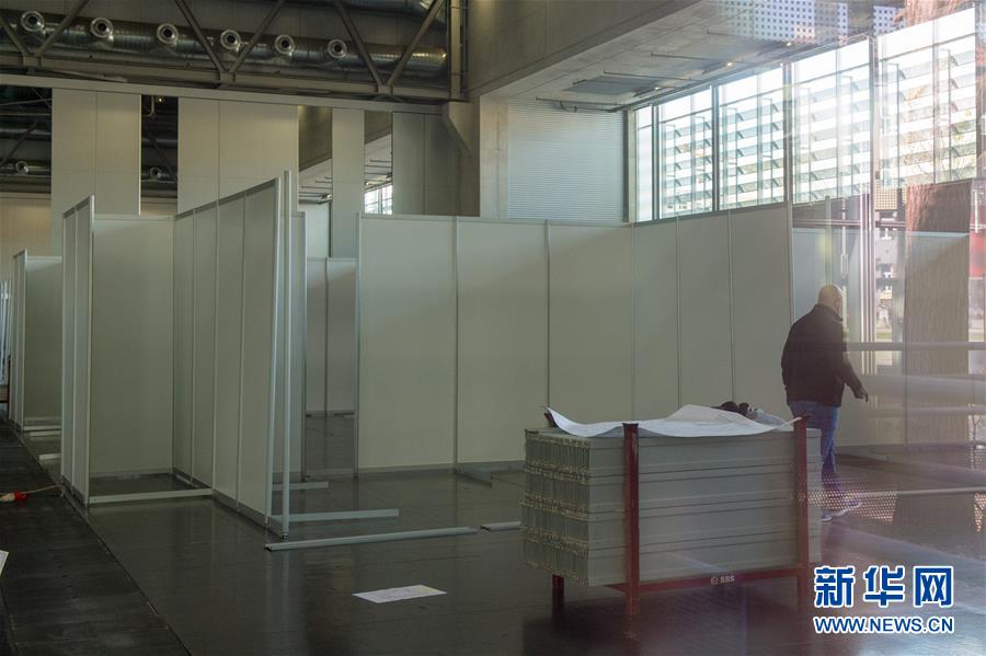 3月14日,在即將改造成為方艙醫(yī)院的維也納展覽館內,工作人員正在加緊施工。近日,由于奧地利新型冠狀病毒感染人數不斷增加,奧地利首都維也納正在將該市的一座大型展覽館——維也納展覽館改造成為一座臨時性的方艙醫(yī)院。據當地媒體介紹,該方艙醫(yī)院將在下周提供880張床位,用于收治輕度病癥患者。新華社記者郭晨攝