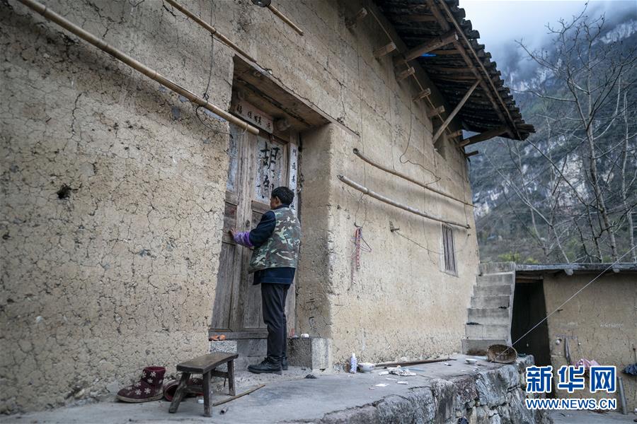 云南省永善縣大興鎮(zhèn)駱丘村村民晏付高關(guān)上老屋的大門準(zhǔn)備離開(kāi)(3月14日攝)。 新華社記者 江文耀 攝