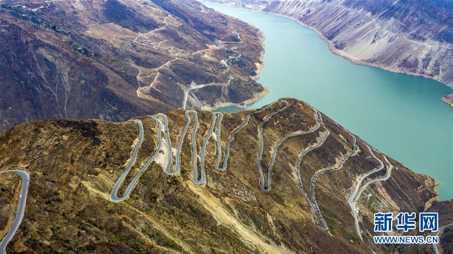 搬家的車隊(duì)行駛在金沙江畔的盤山公路上,江對(duì)岸是四川省金陽(yáng)縣(3月15日攝)。 新華社記者 江文耀 攝