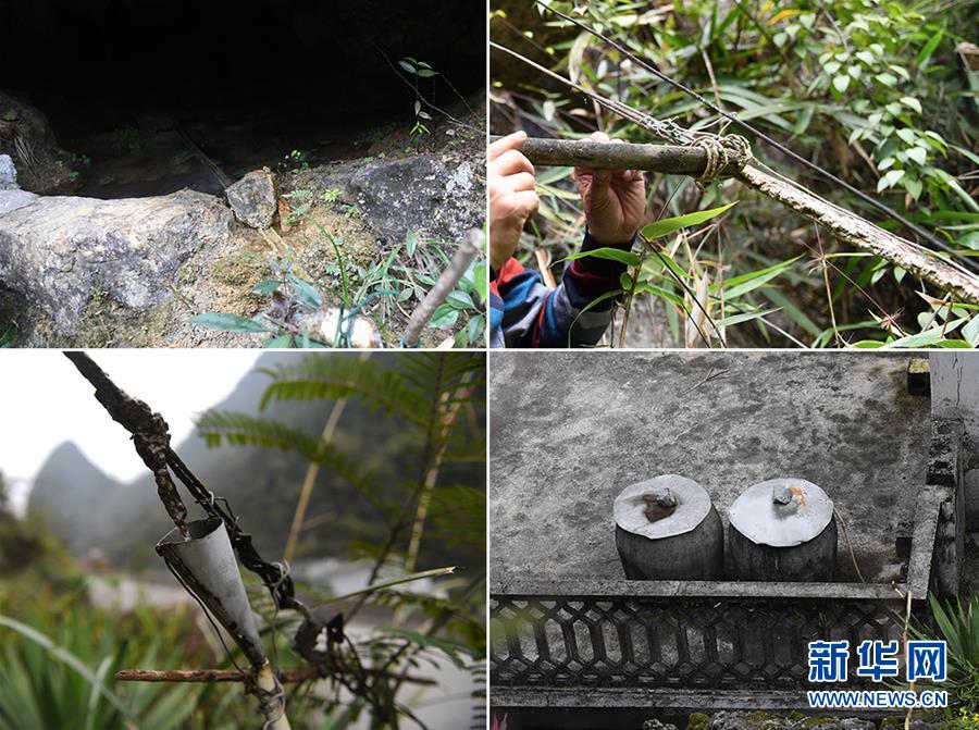 這張拼版圖片顯示廣西都安瑤族自治縣澄江鎮(zhèn)自成村加倫屯村民黃景飛獨創(chuàng)的“鐵線引水”法(2018年3月16日攝)。左上圖為竹枧將山泉水從山洞引出;右上圖為竹枧將山泉水引到鐵線上;左下圖為一個特制的漏斗將水接入膠管里;右下圖為膠管將山泉水送到水缸里。廣西有近一半貧困人口生活在石漠化地區(qū),涉及數(shù)十個縣區(qū)。這里也是廣西飲水保障程度最低的地區(qū),解決貧困人口飲水問題是廣西脫貧攻堅戰(zhàn)“硬仗中的硬仗”?!笆濉币詠恚瑥V西加快實施農(nóng)村飲水安全鞏固提升工程。因地制宜,采取新建、擴(kuò)建及管網(wǎng)延伸等多種措施,補齊貧困地區(qū)水利薄弱短板,進(jìn)一步提升石漠化地區(qū)群眾飲水安全保障水平,助推脫貧攻堅。新華社記者陸波岸攝