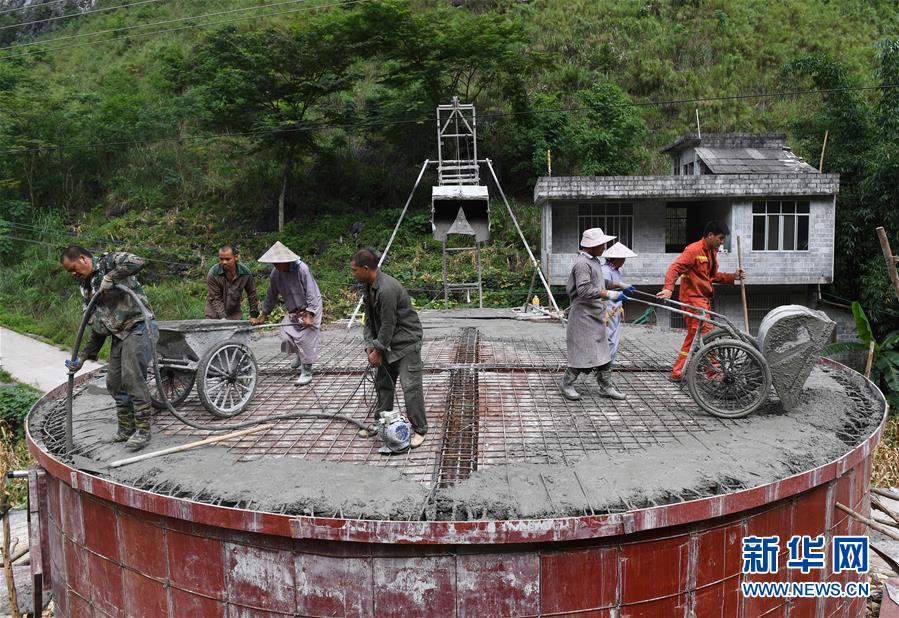 在廣西大化瑤族自治縣板升鄉(xiāng)弄勇村,群眾在修建家庭水柜(2017年9月2日攝)。廣西有近一半貧困人口生活在石漠化地區(qū),涉及數(shù)十個縣區(qū)。這里也是廣西飲水保障程度最低的地區(qū),解決貧困人口飲水問題是廣西脫貧攻堅戰(zhàn)“硬仗中的硬仗”?!笆濉币詠恚瑥V西加快實施農(nóng)村飲水安全鞏固提升工程。因地制宜,采取新建、擴(kuò)建及管網(wǎng)延伸等多種措施,補齊貧困地區(qū)水利薄弱短板,進(jìn)一步提升石漠化地區(qū)群眾飲水安全保障水平,助推脫貧攻堅。新華社記者黃孝邦攝