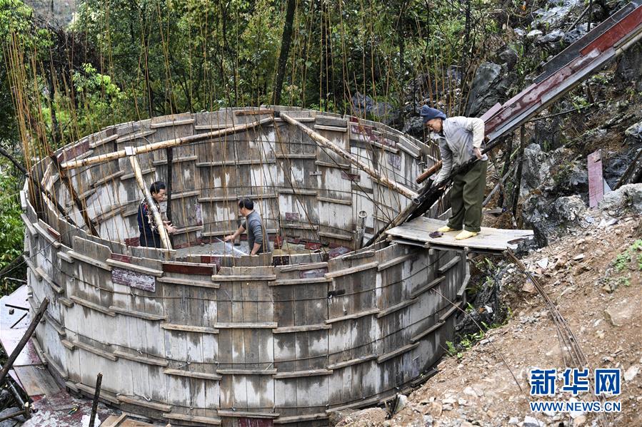 廣西都安瑤族自治縣隆福鄉(xiāng)的村民在修建家庭水柜(3月17日攝)。廣西有近一半貧困人口生活在石漠化地區(qū),涉及數(shù)十個縣區(qū)。這里也是廣西飲水保障程度最低的地區(qū),解決貧困人口飲水問題是廣西脫貧攻堅戰(zhàn)“硬仗中的硬仗”?!笆濉币詠恚瑥V西加快實施農(nóng)村飲水安全鞏固提升工程。因地制宜,采取新建、擴(kuò)建及管網(wǎng)延伸等多種措施,補齊貧困地區(qū)水利薄弱短板,進(jìn)一步提升石漠化地區(qū)群眾飲水安全保障水平,助推脫貧攻堅。新華社記者曹祎銘攝