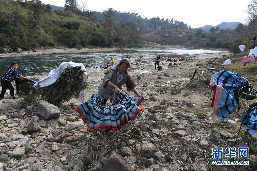 廣西南丹縣里湖瑤族鄉(xiāng),村民在河邊洗衣并就地晾曬(2018年1月12日攝)。廣西有近一半貧困人口生活在石漠化地區(qū),涉及數(shù)十個縣區(qū)。這里也是廣西飲水保障程度最低的地區(qū),解決貧困人口飲水問題是廣西脫貧攻堅戰(zhàn)“硬仗中的硬仗”。“十三五”以來,廣西加快實施農(nóng)村飲水安全鞏固提升工程。因地制宜,采取新建、擴(kuò)建及管網(wǎng)延伸等多種措施,補齊貧困地區(qū)水利薄弱短板,進(jìn)一步提升石漠化地區(qū)群眾飲水安全保障水平,助推脫貧攻堅。新華社記者周華攝