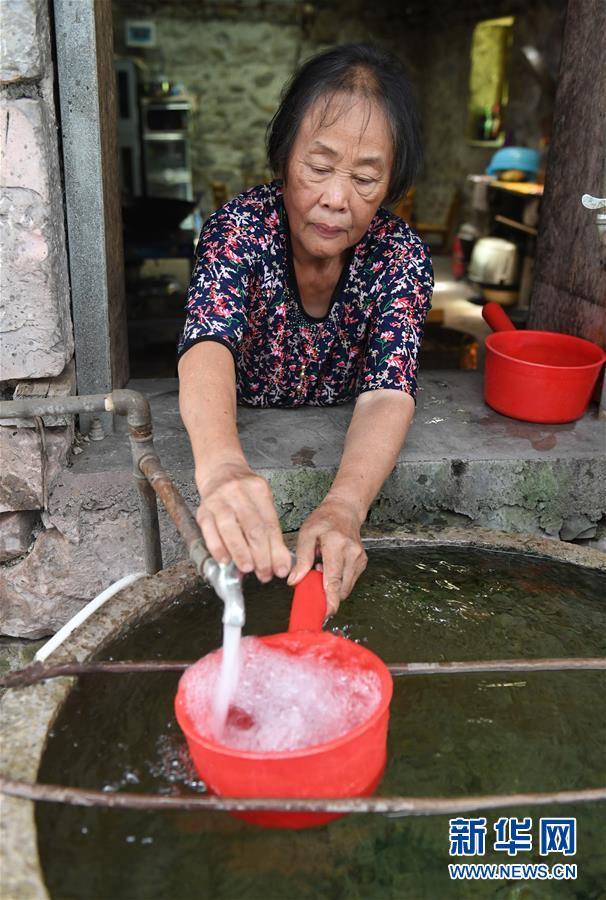 在廣西都安瑤族自治縣龍灣鄉(xiāng)琴棋村琴嶺屯,村民在接從水柜里引來的自來水(2019年7月23日攝)。廣西有近一半貧困人口生活在石漠化地區(qū),涉及數(shù)十個縣區(qū)。這里也是廣西飲水保障程度最低的地區(qū),解決貧困人口飲水問題是廣西脫貧攻堅戰(zhàn)“硬仗中的硬仗”?!笆濉币詠?,廣西加快實施農(nóng)村飲水安全鞏固提升工程。因地制宜,采取新建、擴(kuò)建及管網(wǎng)延伸等多種措施,補齊貧困地區(qū)水利薄弱短板,進(jìn)一步提升石漠化地區(qū)群眾飲水安全保障水平,助推脫貧攻堅。新華社記者陸波岸攝