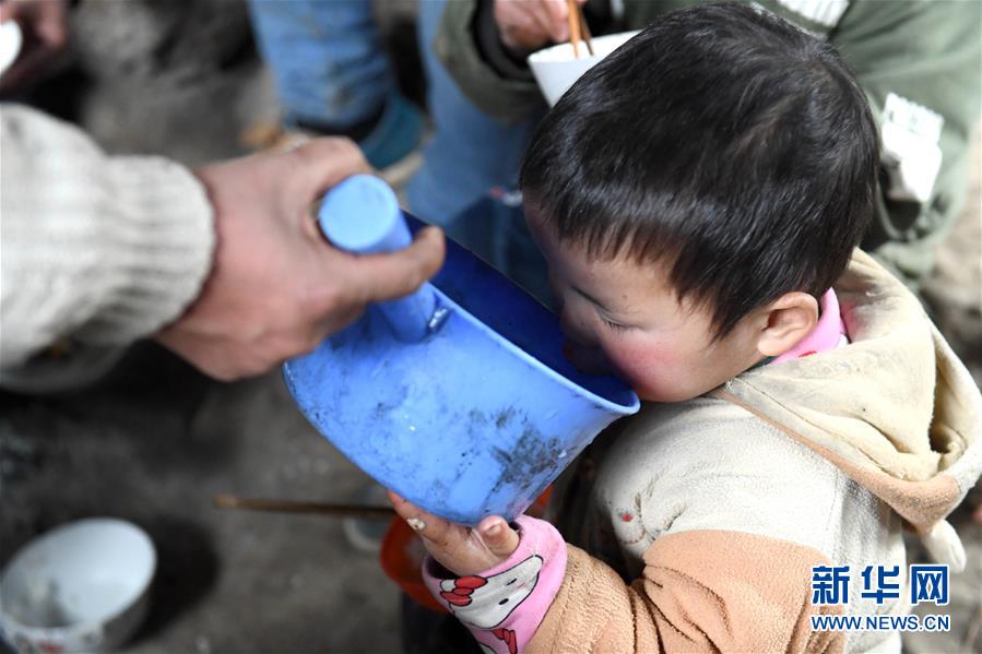 廣西南丹縣里湖瑤族鄉(xiāng),村民給孩子喂水(2018年1月12日攝)。廣西有近一半貧困人口生活在石漠化地區(qū),涉及數(shù)十個縣區(qū)。這里也是廣西飲水保障程度最低的地區(qū),解決貧困人口飲水問題是廣西脫貧攻堅戰(zhàn)“硬仗中的硬仗”?!笆濉币詠?,廣西加快實施農(nóng)村飲水安全鞏固提升工程。因地制宜,采取新建、擴(kuò)建及管網(wǎng)延伸等多種措施,補齊貧困地區(qū)水利薄弱短板,進(jìn)一步提升石漠化地區(qū)群眾飲水安全保障水平,助推脫貧攻堅。新華社記者周華攝