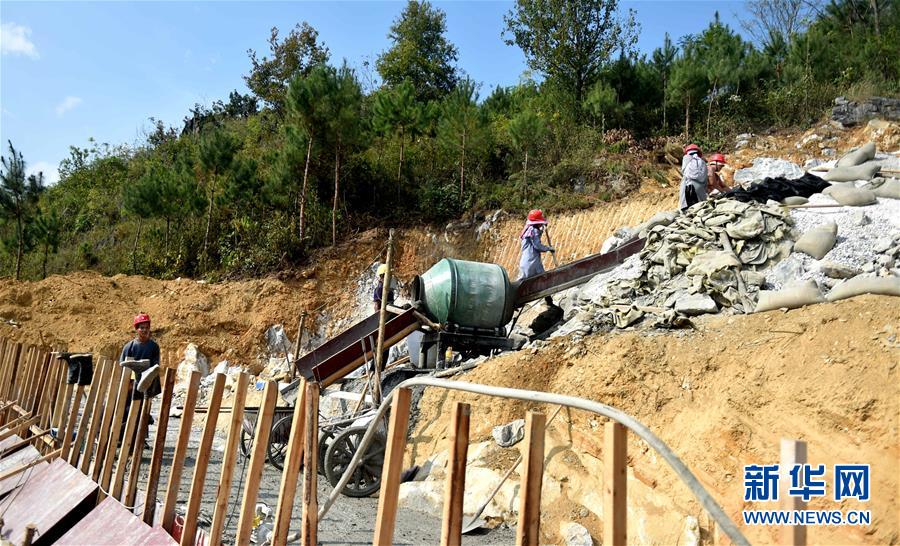 這是廣西大化瑤族自治縣七百弄鄉(xiāng)戈從村弄階屯群眾在修建水柜(2016年11月23日攝)。廣西有近一半貧困人口生活在石漠化地區(qū),涉及數(shù)十個縣區(qū)。這里也是廣西飲水保障程度最低的地區(qū),解決貧困人口飲水問題是廣西脫貧攻堅戰(zhàn)“硬仗中的硬仗”?!笆濉币詠?,廣西加快實施農(nóng)村飲水安全鞏固提升工程。因地制宜,采取新建、擴(kuò)建及管網(wǎng)延伸等多種措施,補齊貧困地區(qū)水利薄弱短板,進(jìn)一步提升石漠化地區(qū)群眾飲水安全保障水平,助推脫貧攻堅。新華社記者張愛林?jǐn)z