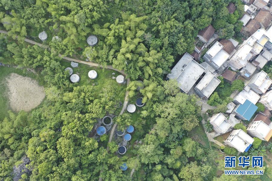 圖為位于廣西隆安縣都結(jié)鄉(xiāng)隴選村后山上的原生水潭和地頭水柜(無人機(jī)照片,2019年10月16日攝)。廣西有近一半貧困人口生活在石漠化地區(qū),涉及數(shù)十個縣區(qū)。這里也是廣西飲水保障程度最低的地區(qū),解決貧困人口飲水問題是廣西脫貧攻堅戰(zhàn)“硬仗中的硬仗”。“十三五”以來,廣西加快實施農(nóng)村飲水安全鞏固提升工程。因地制宜,采取新建、擴(kuò)建及管網(wǎng)延伸等多種措施,補齊貧困地區(qū)水利薄弱短板,進(jìn)一步提升石漠化地區(qū)群眾飲水安全保障水平,助推脫貧攻堅。新華社記者曹祎銘攝