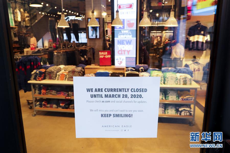 3月21日,在美國(guó)紐約時(shí)報(bào)廣場(chǎng),一家服裝店貼出閉店告示。美國(guó)紐約州、伊利諾伊州、康涅狄格州20日發(fā)布針對(duì)本州居民的“居家令”,以遏制新冠病毒傳播。這些“居家令”涵蓋紐約、洛杉磯、芝加哥等大城市,影響數(shù)千萬(wàn)人。白宮20日發(fā)表聲明說(shuō),總統(tǒng)特朗普已宣布紐約州出現(xiàn)“重大災(zāi)難”,命令聯(lián)邦政府支援該州抗擊新冠肺炎疫情。新華社記者王迎攝