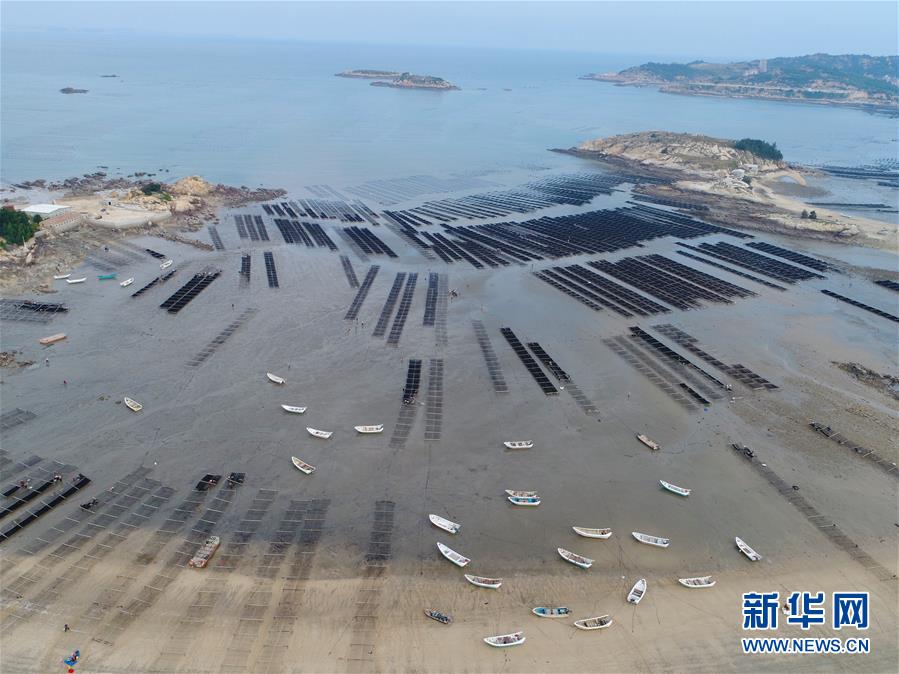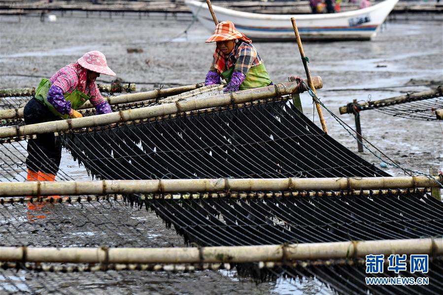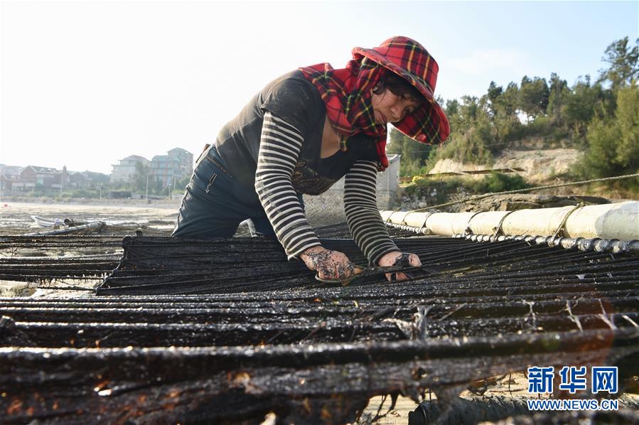 10月24日,福建莆田蔣山村村民在收獲紫菜。 新華社記者張國俊攝