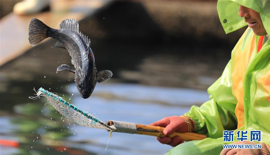 漁民在海洋牧場上分揀捕獲的海魚(7月8日攝)。新華社記者姚劍鋒攝