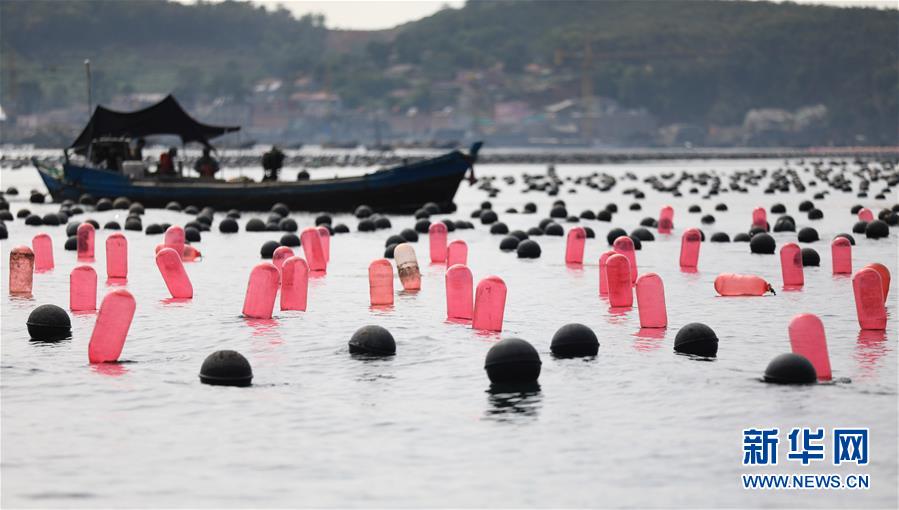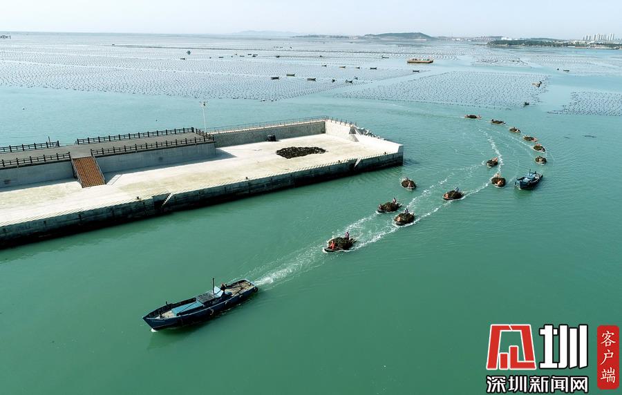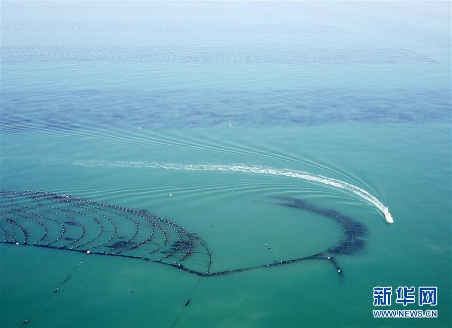 目前正是遼寧省大連市長??h扇貝和魚類收獲的季節(jié),長??h小長山島海域經(jīng)典國家級海洋牧場呈現(xiàn)出一片繁忙的豐收景象。