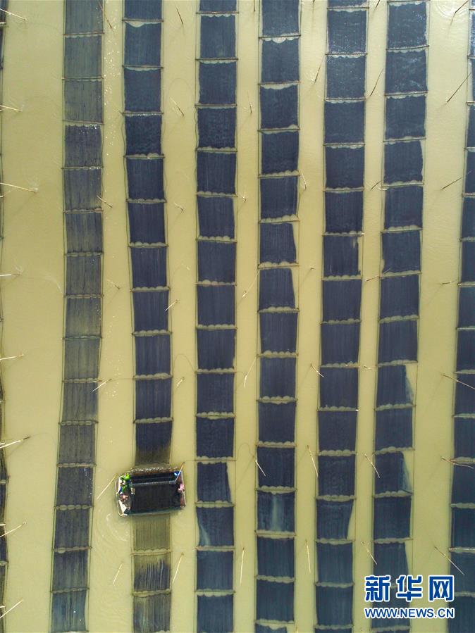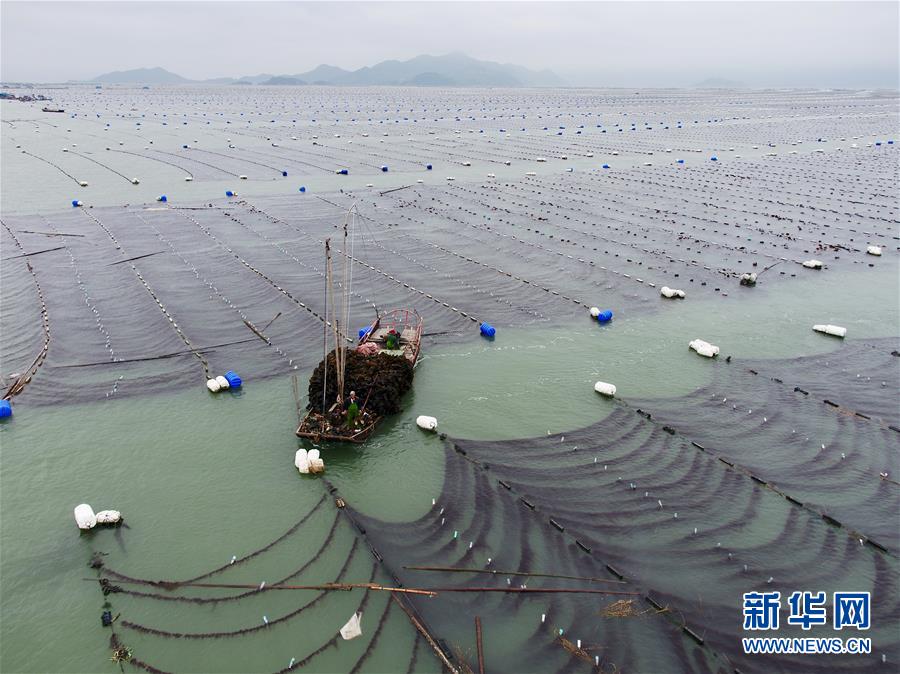 近日,福建省莆田市湄洲灣北岸蔣山村的2000多畝種植紫菜進(jìn)入收割旺季,當(dāng)?shù)卮迕駬屖疹^水紫菜。蔣山村現(xiàn)有200多家紫菜種植戶,紫菜種植成為當(dāng)?shù)卮迕裨鍪罩赂坏闹饕a(chǎn)業(yè)。