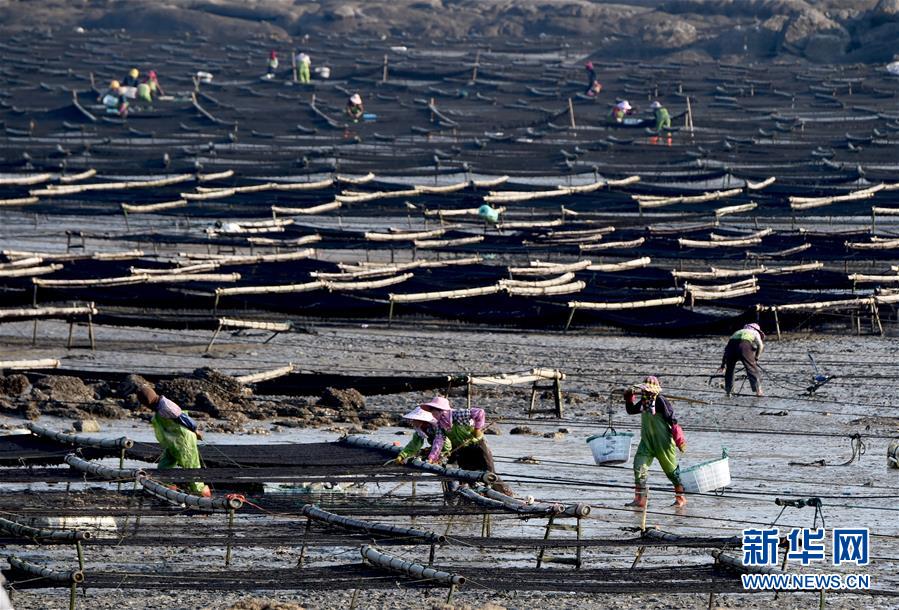 10月24日,福建莆田蔣山村村民在收獲紫菜。 新華社記者姜克紅攝