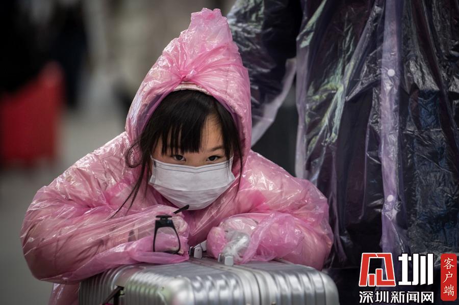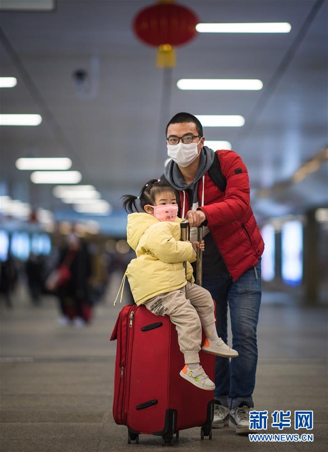 3月28日,在漢口火車站,一名小朋友幫家長(zhǎng)提行李出站。新華社記者肖藝九攝