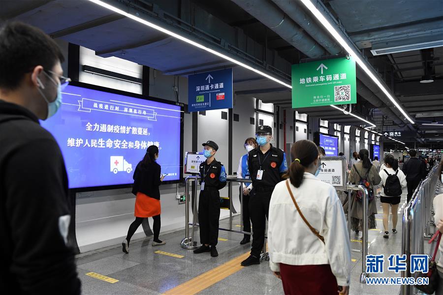 3月18日晚高峰時(shí)段,在深圳地鐵車公廟站,乘客掃描二維碼進(jìn)行實(shí)名登記。新華社記者梁旭攝