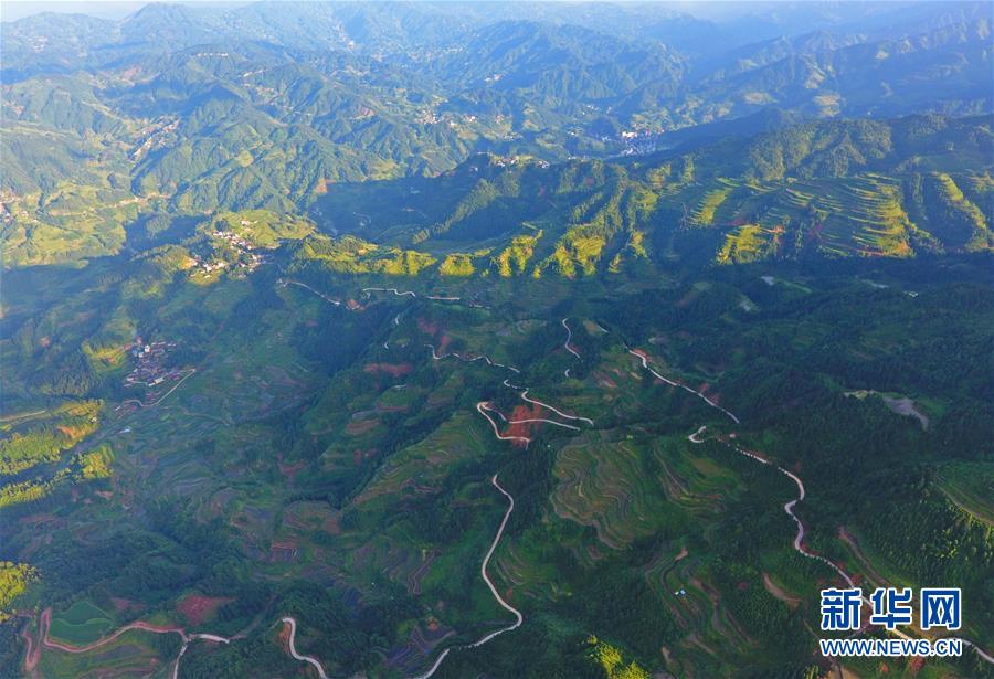 這是融水苗族自治縣桿洞鄉(xiāng)百秀村的村屯公路(6月20日無人機拍攝)。新華社記者黃孝邦攝
