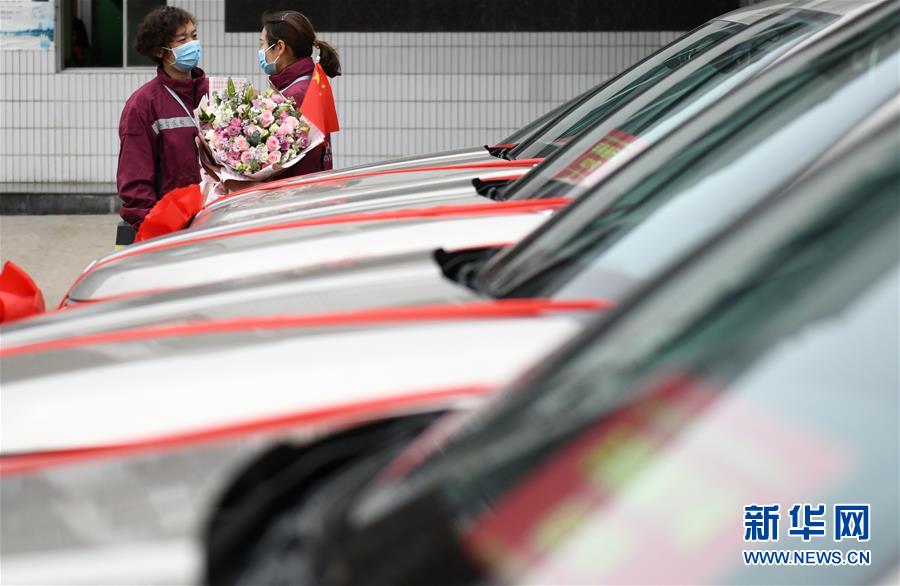 4月3日,乘車踏上歸途的寶雞市三家醫(yī)院的醫(yī)療隊(duì)隊(duì)員與“戰(zhàn)友”告別。 當(dāng)日,陜西省第一批援鄂醫(yī)療隊(duì)137名隊(duì)員在陜西省工人療養(yǎng)院結(jié)束了為期兩周的隔離休養(yǎng)。醫(yī)療隊(duì)員與“戰(zhàn)友”深情作別后,陸續(xù)踏上歸途。 新華社記者 李一博 攝