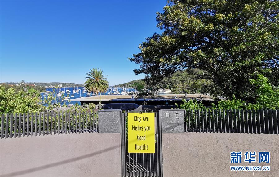 這是4月4日在澳大利亞悉尼費(fèi)爾萊特社區(qū)拍攝的祝愿人們身體健康的標(biāo)語牌。新華社記者白雪飛攝
