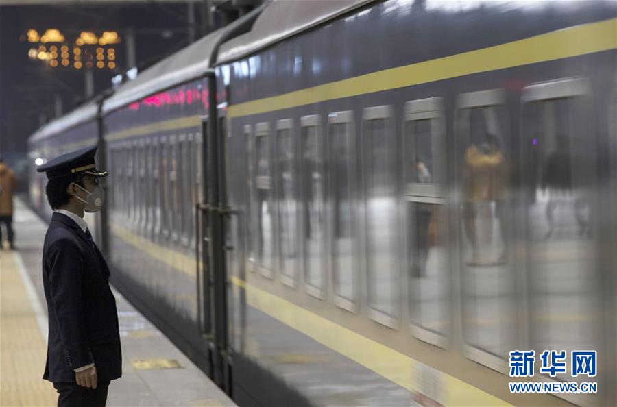 4月8日凌晨,K81次列車駛離武昌火車站。 4月8日零時起,武漢市正式解除離漢離鄂通道管控措施,有序恢復(fù)對外交通。 新華社記者 費茂華 攝